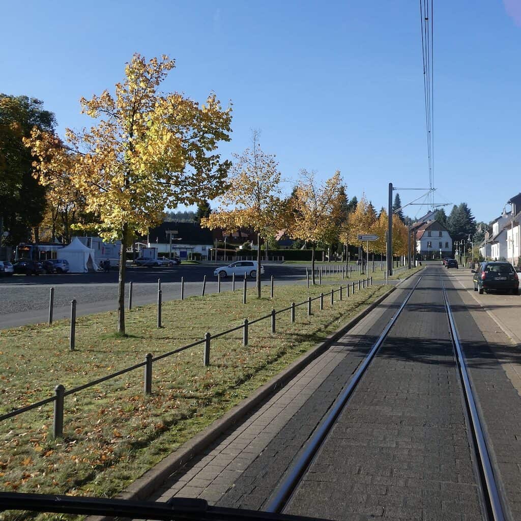 In Lichtenau ist die Fahrbahn recht verwirrend. Erst fährt man voll auf den Schienen der Strassenbahn, später fährt man ohne jeglichen Anhaltspunkt irgendwie durch die Häuser.