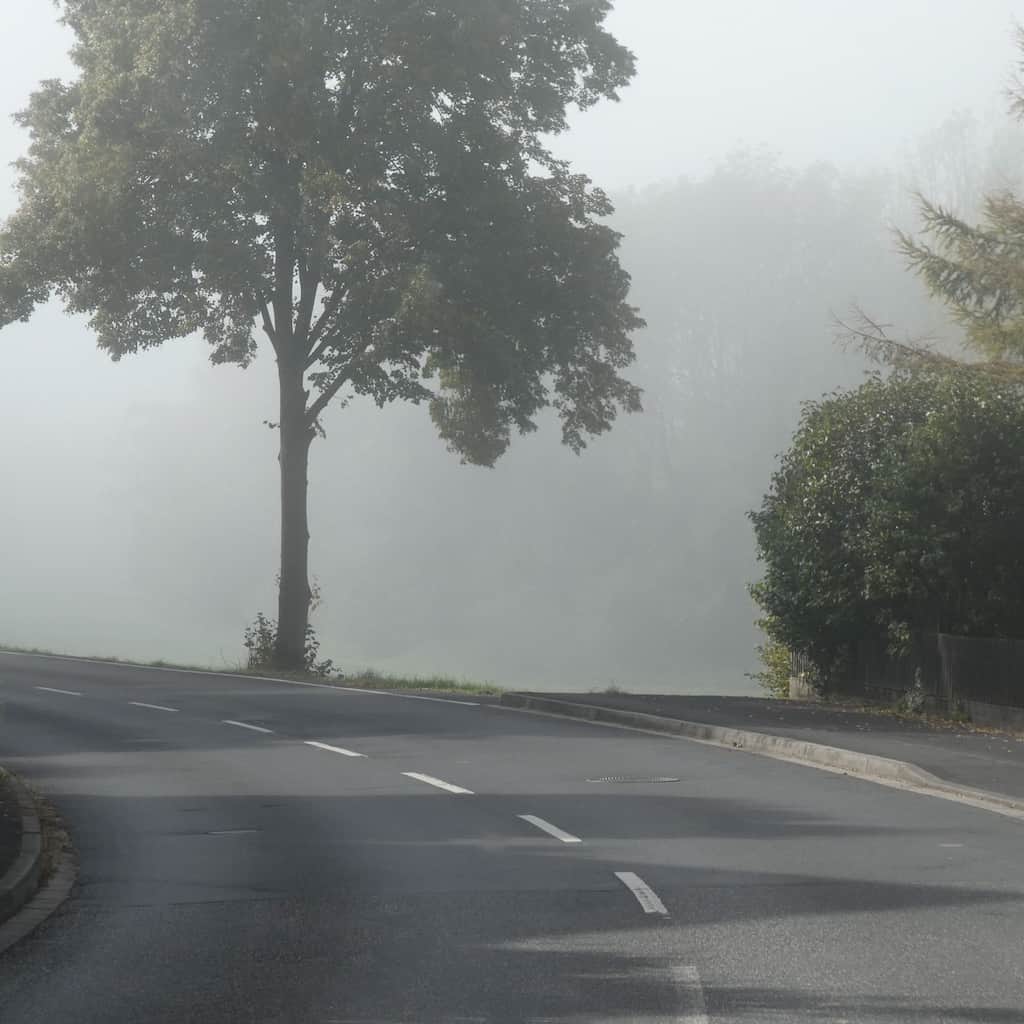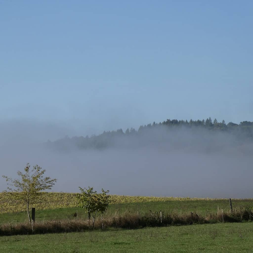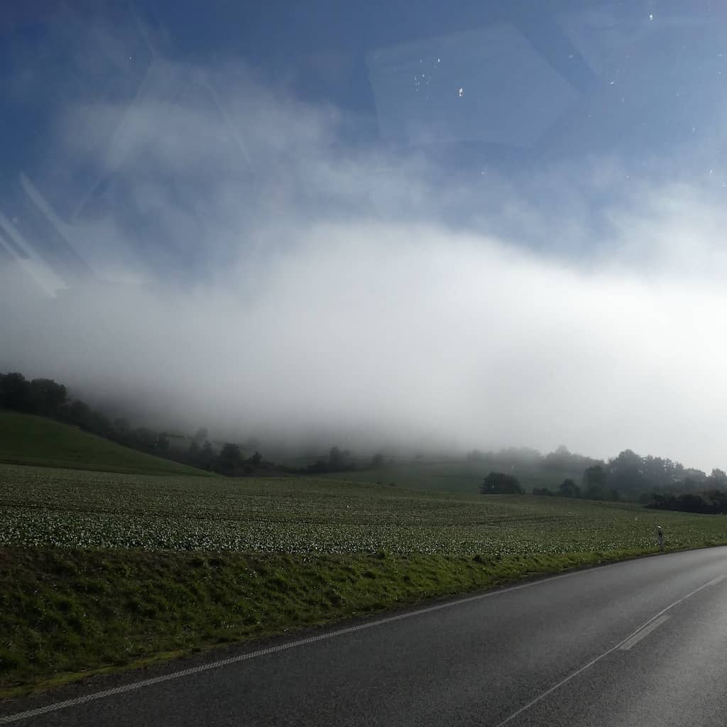 Richtung Fulda-Tal ziehen plötzlich Nebelschwaden über’s Land.