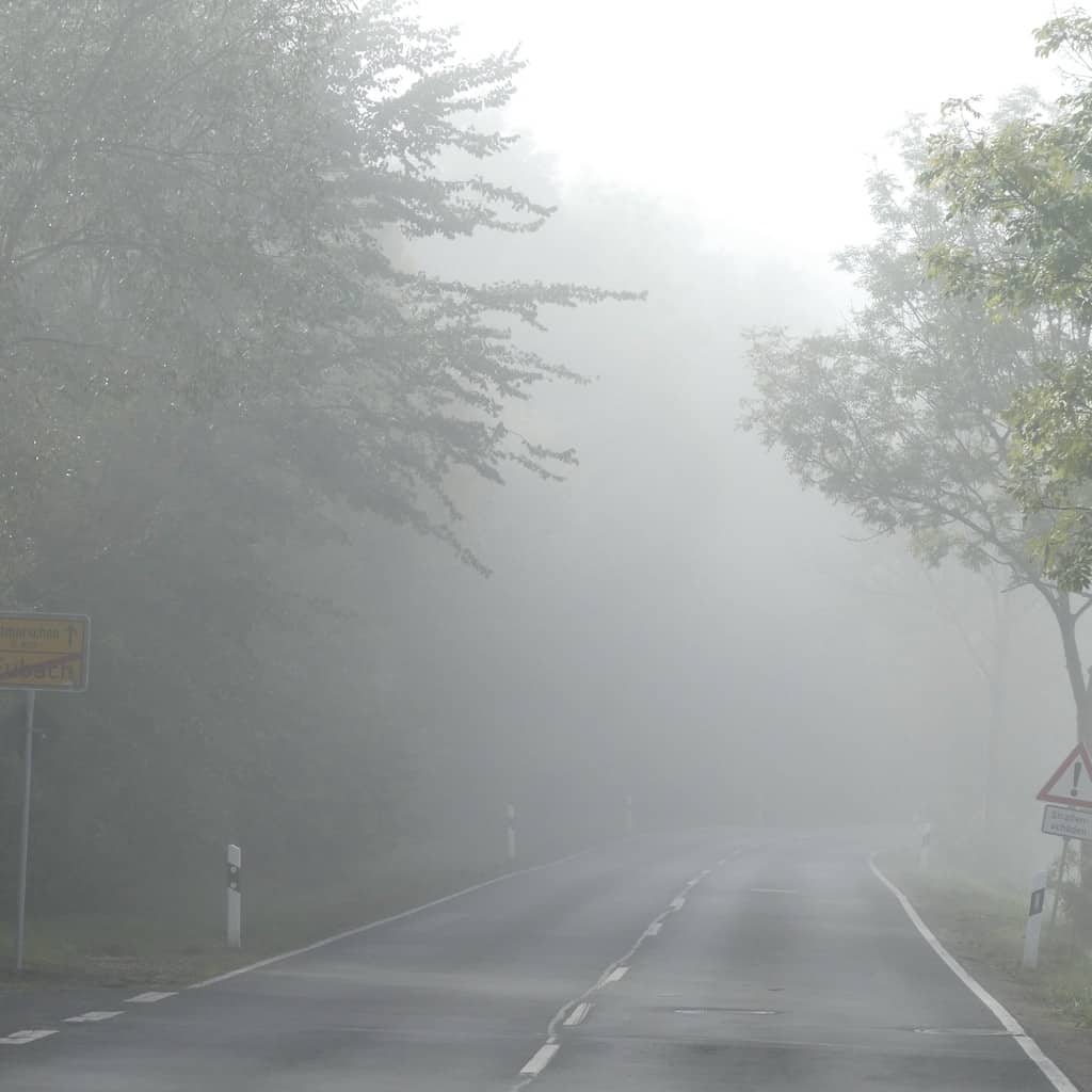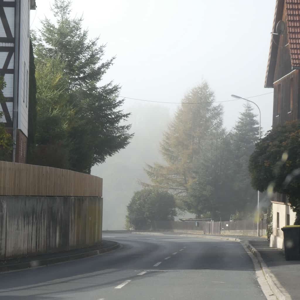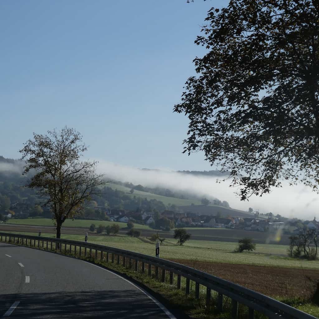 Richtung Fulda-Tal ziehen plötzlich Nebelschwaden über’s Land.