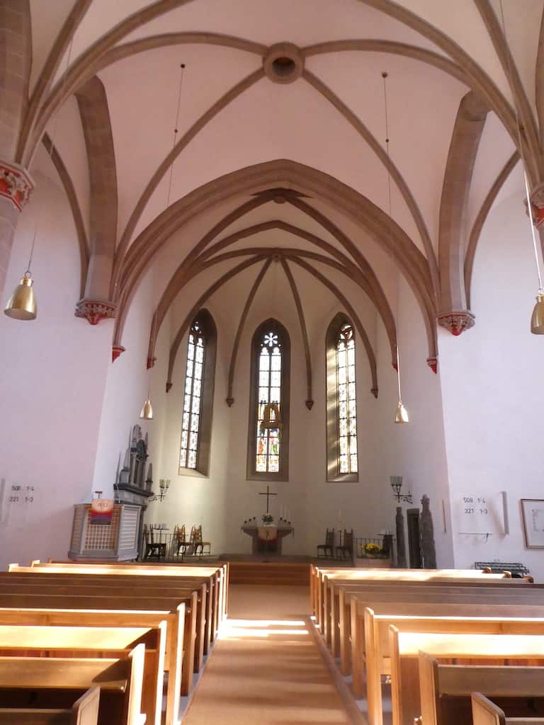 Die ehemalige Stiftskirche «St. Elisabeth und Maria», ein spätgotisches Hallenlanghaus von ursprünglich fünf *Jochen, wurde nach einem Stadtbrand in den Jahren um 1500 errichtet. Nach einigen erforderlichen Umbauten entstand der heute klassizistische Innenraum.