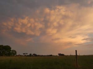 Hier sehen wir sehr spezielle tropfenförmige Wolken.
