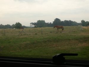 Beim Frühstück sehen wir die Pferde auf der Koppel gegenüber.