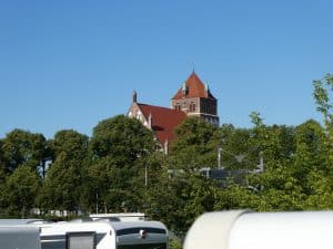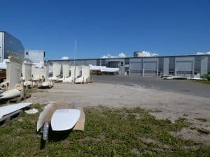 Zuerst fuhren wir mit den Fahrrädern auf der anderen Seite der Ryck zum Werftgelände von Hanse. Hanse baut hier sehr erfolgreich Serienboote und ist inzwischen der grösste Hersteller von Segelyachten in Deutschland.