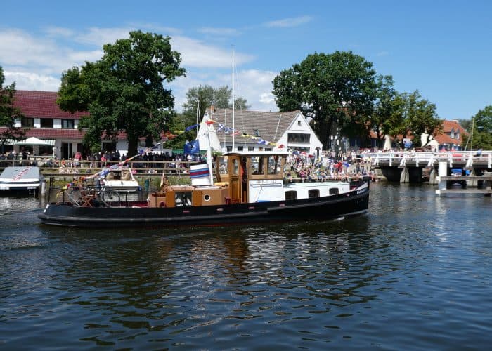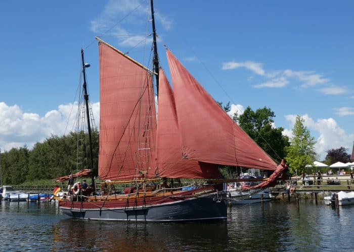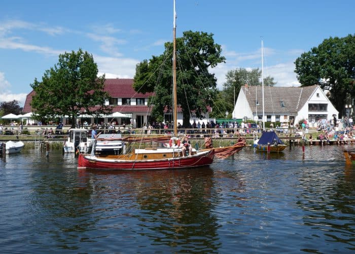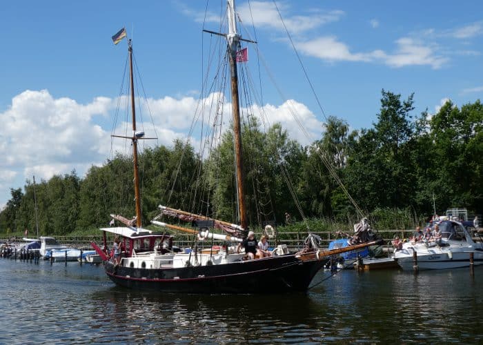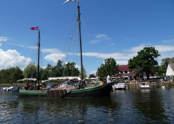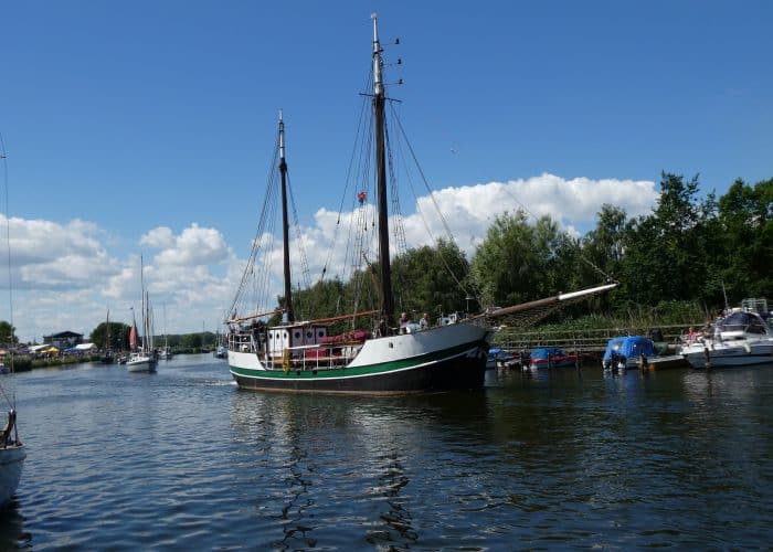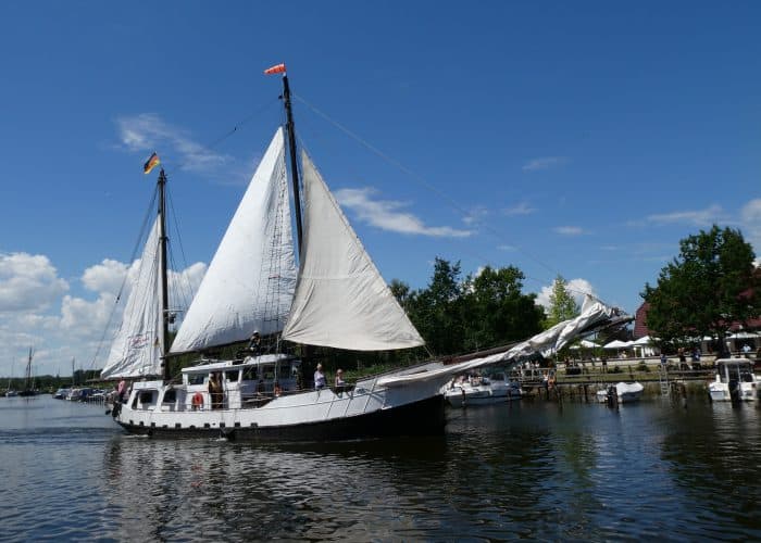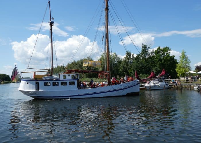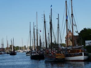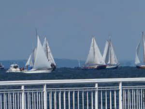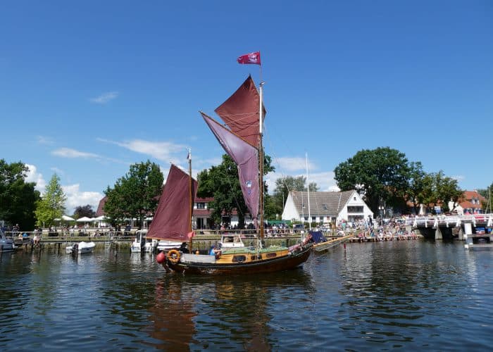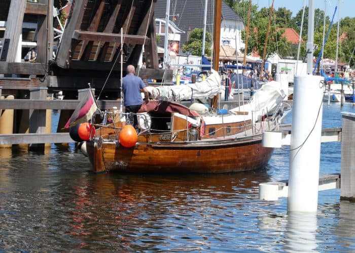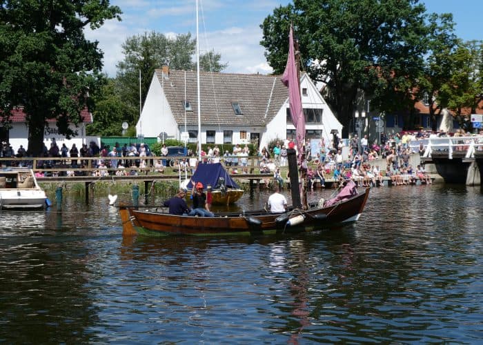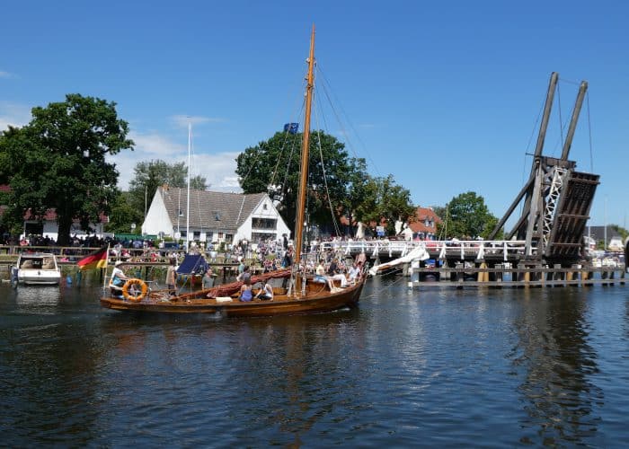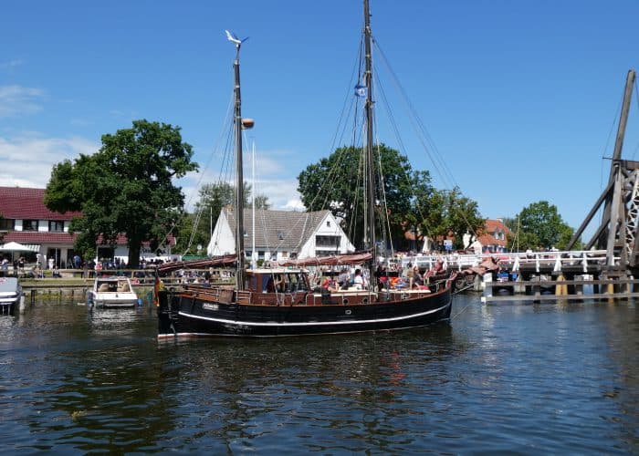 Gegen Mittag fuhren wir wieder mit dem Bus nach Wieck, um die Parade der historischen Schiffe zu erleben. Während der Brückendurchfahrt wurden die Schiffe vorgestellt.