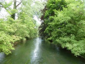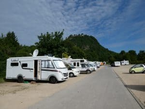 Der Weg führt vom Standplatz durch das Gelände der ehemaligen Landesgartenschau. Schon nach 10 Minuten ist man im Zentrum.