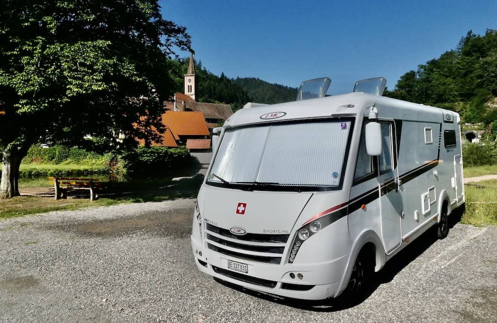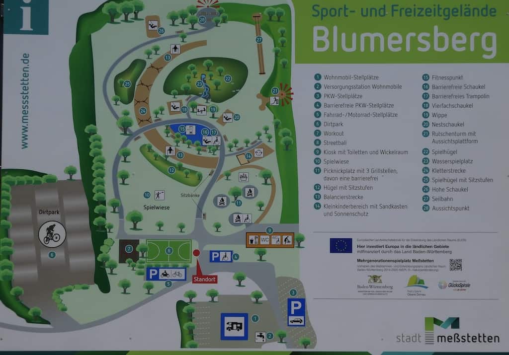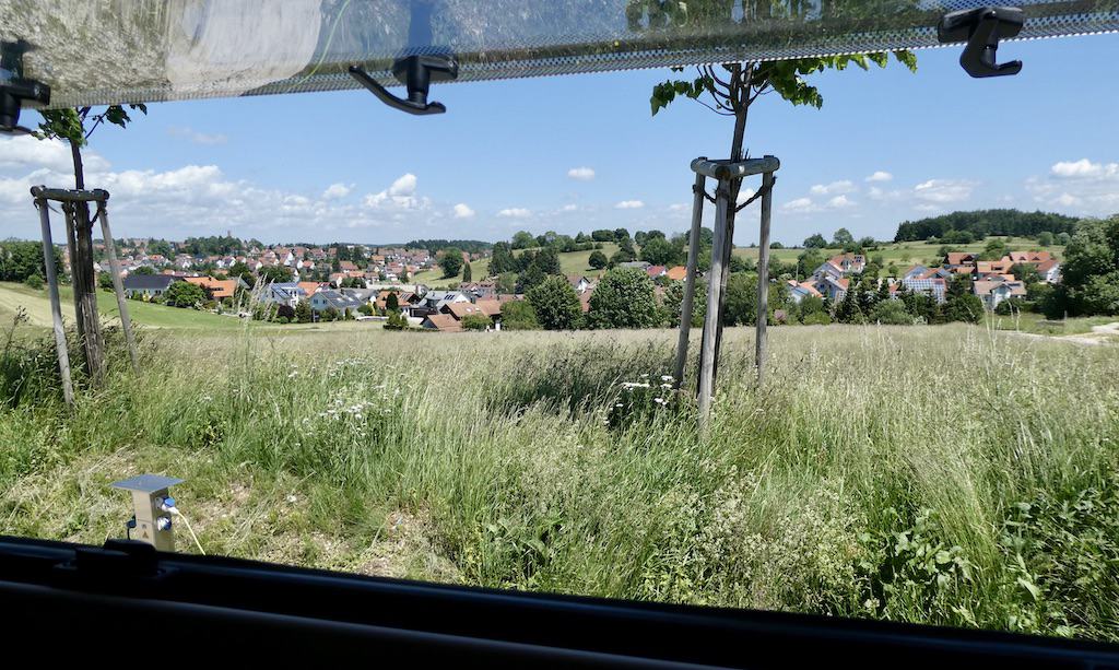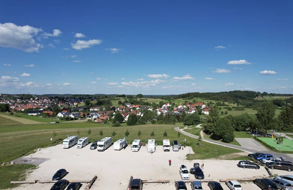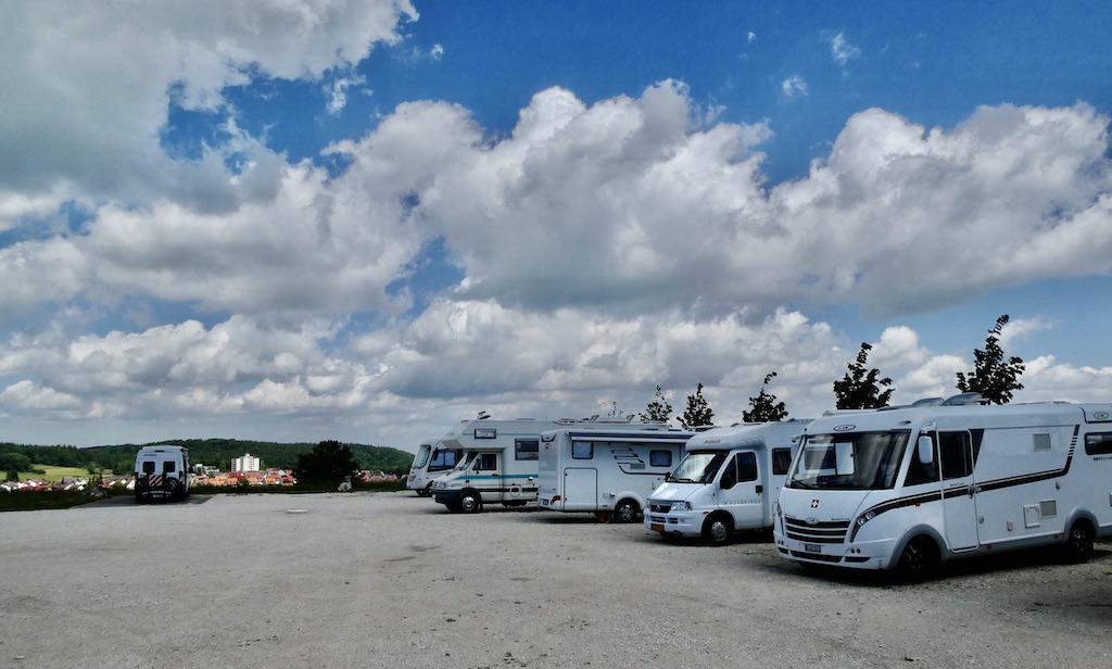 In Meßstetten wollten wir eigentlich nur entsorgen. Aber der Stellplatz hier auf dem Blumersberg liegt so genial, dass wir heute hierbleiben. Von der Anhöhe auf 963 müM. sehen wir auf den Ort und weit in die Gegend. Die Gemeinde stellt Platz für 9 Reisemobile zur Verfügung. Das Übernachten und Entsorgen sind kostenlos. Strom und Frischwasser sind gegen Gebühr erhältlich.