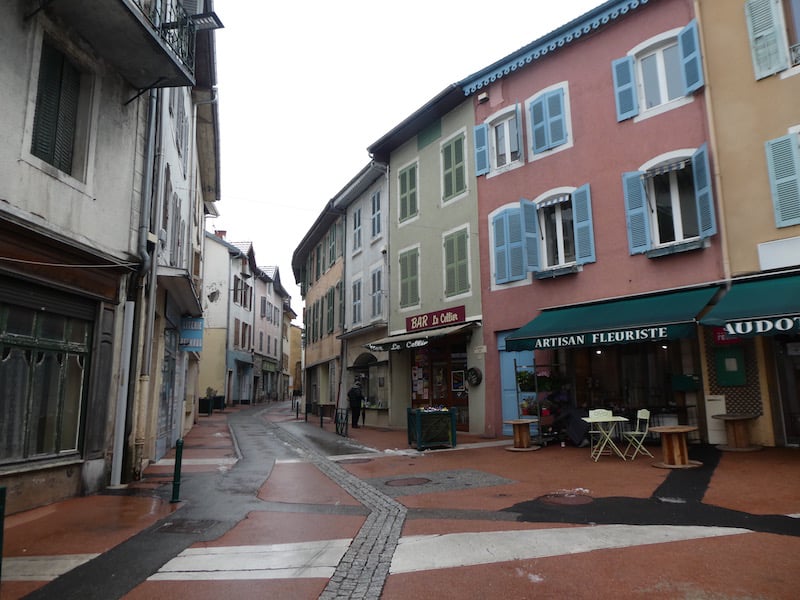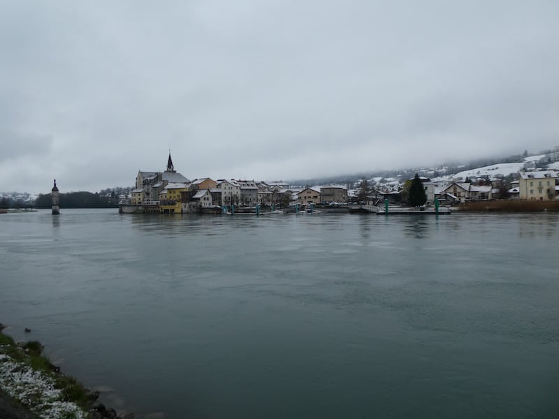 Beim morgendlichen Gang nach Seyssel war es noch regnerisch trüb. Der Ort hat etwa 2300 Einwohner, die von Landwirtschaft und Kleinhandel leben.