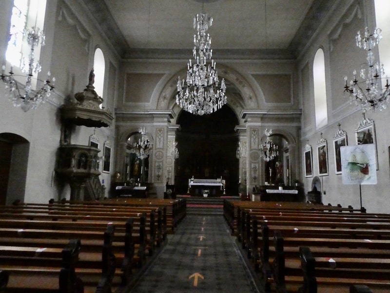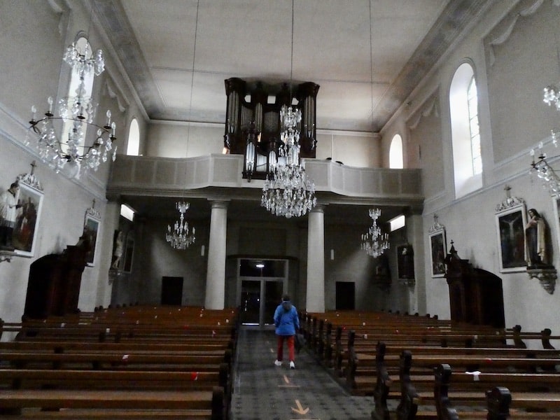 Als der Regen etwas nachlässt, wagen wir uns mit Schirm auf einen Rundgang. Orgelklänge ziehen uns als erstes gleich in die Kirche. Wir sind die einzigen, die das eine Weile geniessen.