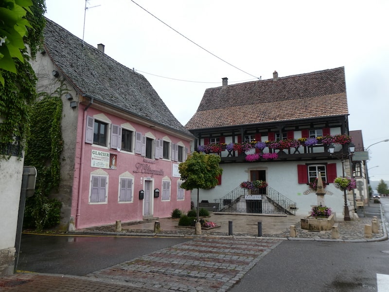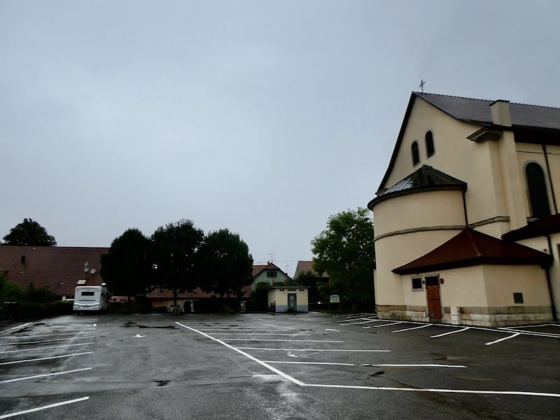 Aber schon bald holt uns der Wetterbericht ein. Im Regen steuern wir Oltingue (elsässisch Oltige, deutsch Oltingen) an, da es hier einen offiziellen Stellplatz gibt.