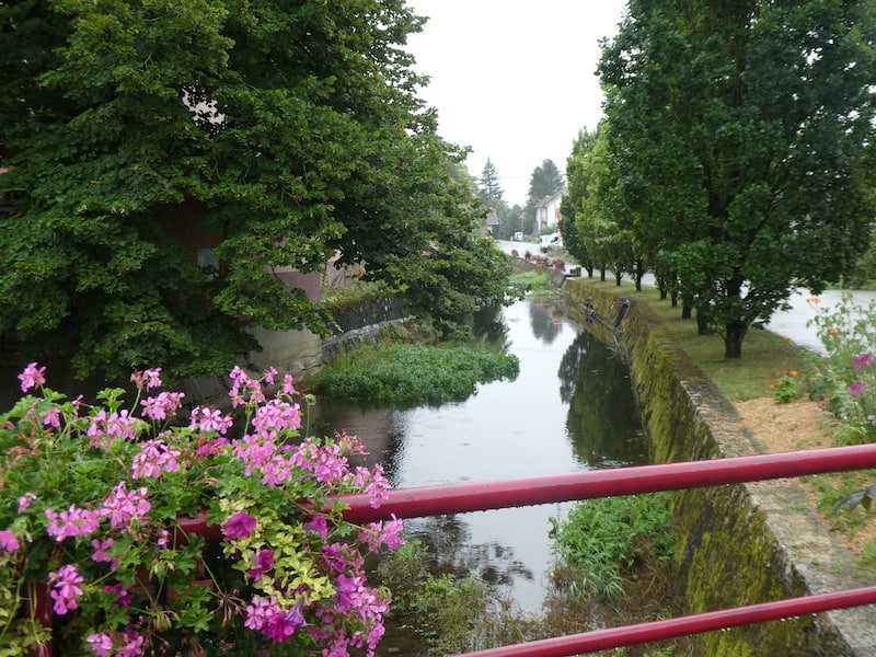 Auf einer Tafel sehen wir, dass es im einige Kilometer entfernten Ferette auch einen Stellplatz für Camper gibt. Also starten wir im Regen dorthin.