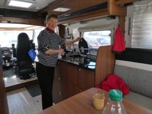 Renate kocht, Michael verfasst den gestrigen Blog und gleichzeitig laden wir alle Geräte auf. Trotzdem produziert unsere Solaranlage noch Stromüberschuss. Super!