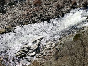 Die Landschaft ist wild und rau, die Natur noch im Winterschlaf auf dieser Höhe. Die Sonne scheint, aber im Schatten ist es 5° kalt.