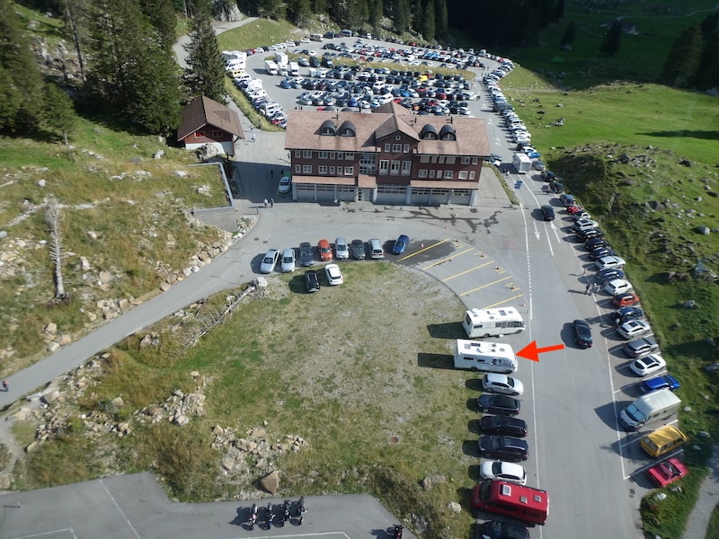 Wir schweben über unseren Mobi hinweg und bald sehen wir ihn nur noch ganz klein. 10 Minuten nur dauert die Fahrt. Dann sind wir ca. 1100 Höhenmeter weiter oben auf 2503 m.ü.M.