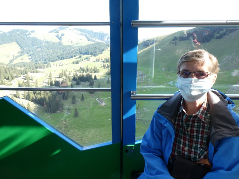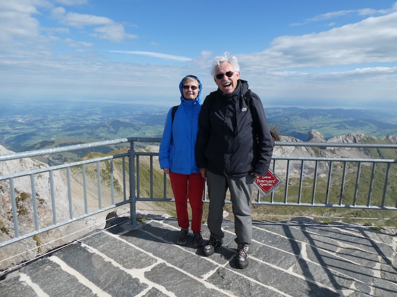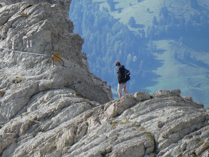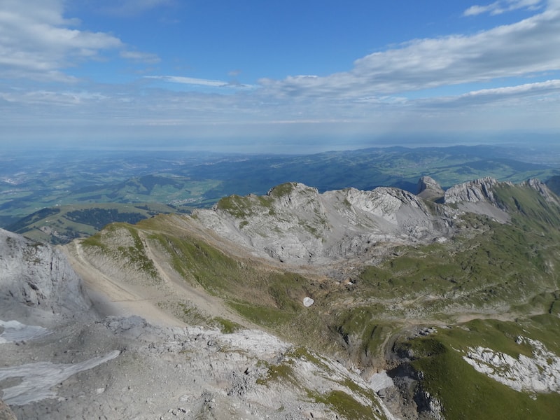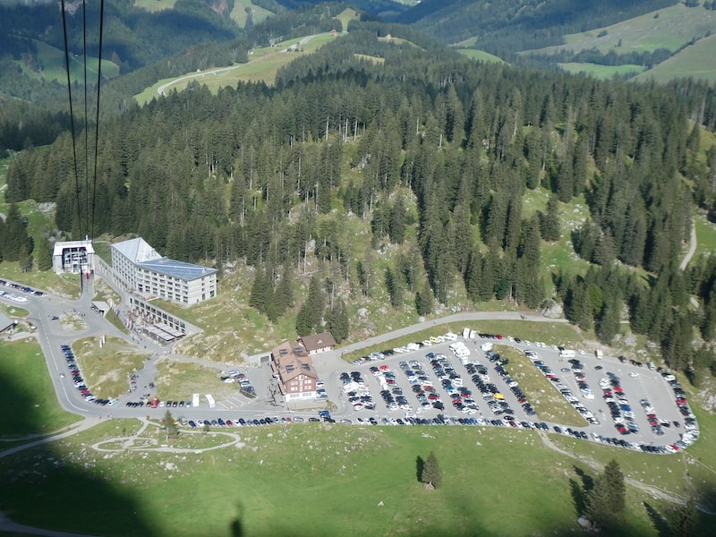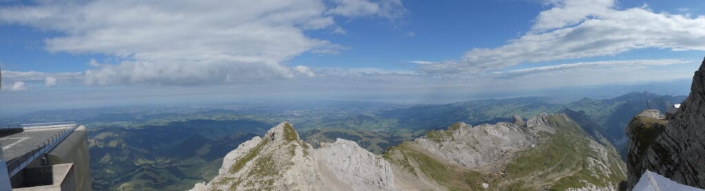 Samstag: Das Wetter ist immer noch gut. Also fahren wir mit der Schwebebahn auf den Säntis hinauf.