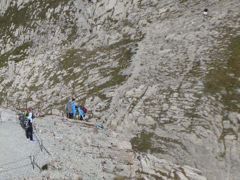 Erstaunlich viele Besucher klettern in ca. 3.5 Stunden zu Fuss hinauf. Die Route ist doch sehr exponiert, also nichts mehr für uns.