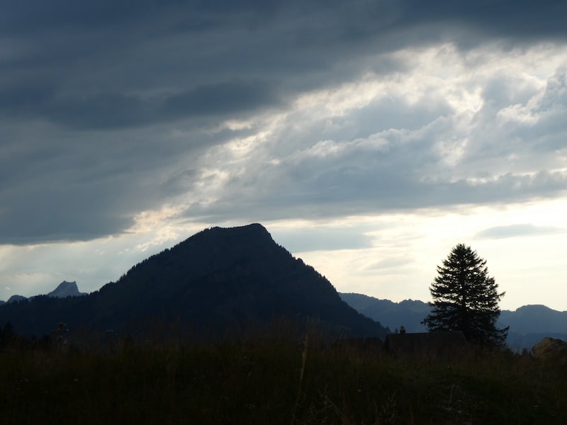 Dunkle Wolken ziehen auf. Morgen ändert wohl das Wetter. Später gibt es aber doch noch einen schönen Sonnenuntergang.