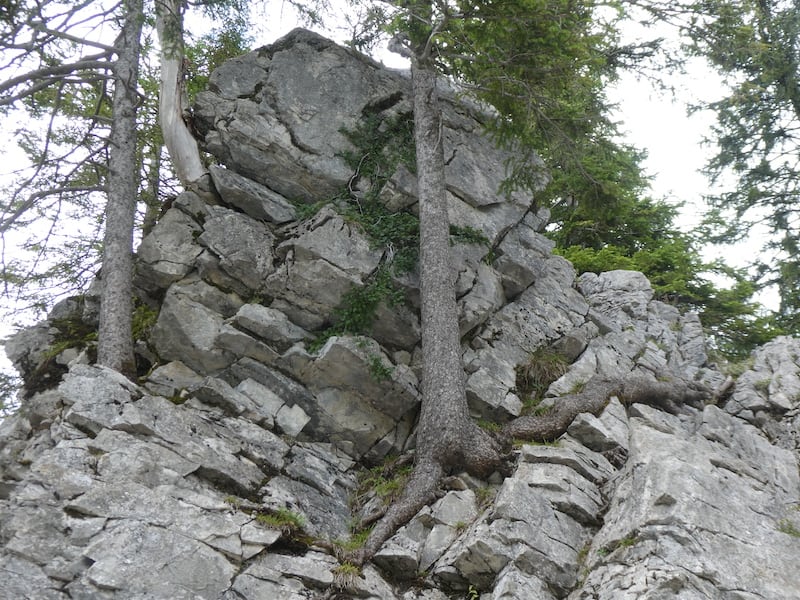 Wieder treffen wir auf viele Tannen, die ihr Wurzelwerk im Fels verankert haben.