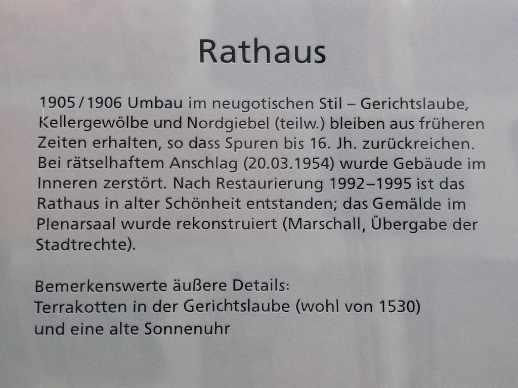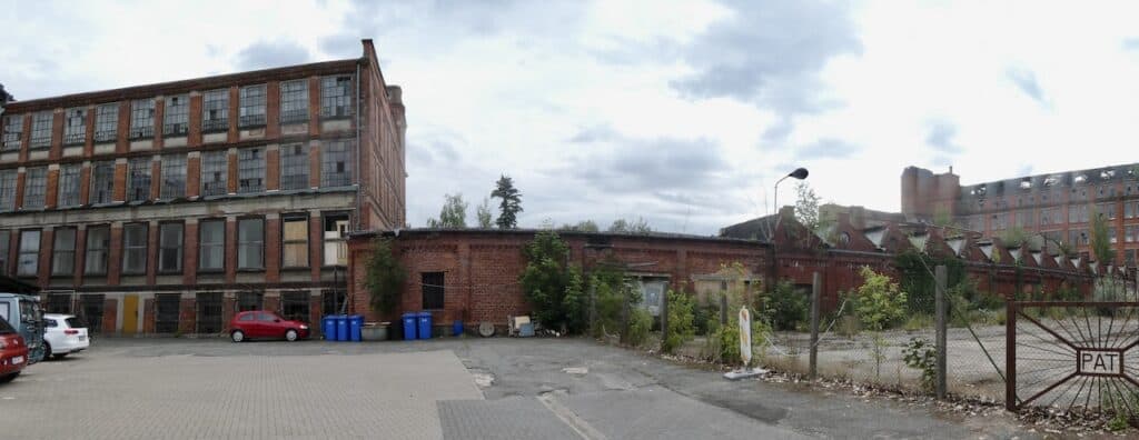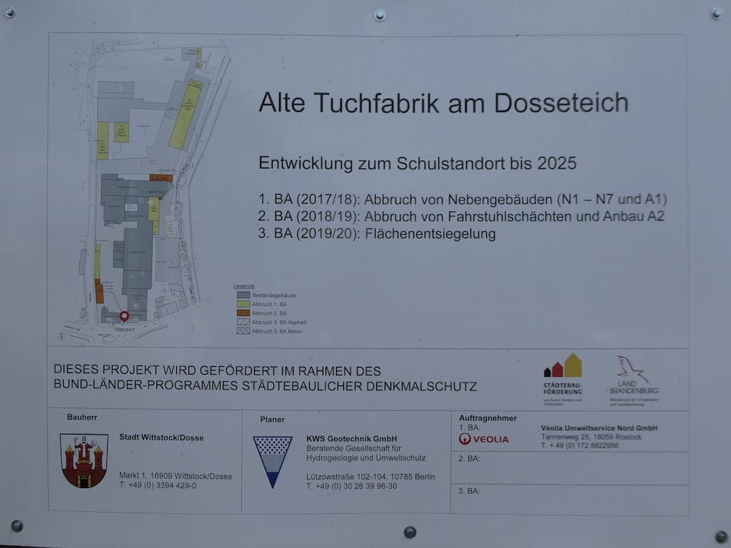 Ausserhalb der Stadtmauer fällt uns zuerst eine riesige Industrie-Ruine auf. 1968 wurde auf dem Gelände der ehemaligen Paulschen Tuchfabrik mit vormals 400 Beschäftigten der VEB Obertrikotagenwerk „Ernst Lück“ gegründet. 1989 hatte er als größter Arbeitgeber der Stadt 2800 Beschäftigte. Er wurde 1990 von der Treuhand abgewickelt. Die Nachfolgefirmen konnten sich nicht etablieren, die letzte ging 1997 in die Insolvenz.