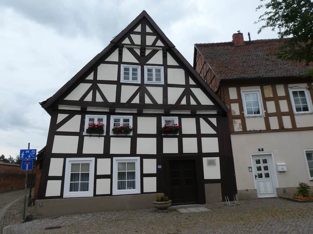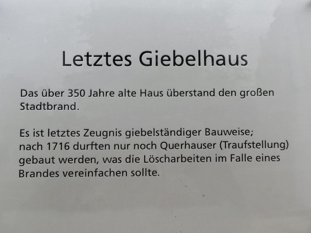 Dann kommen wir am letzten Giebelhaus der Stadt vorbei.