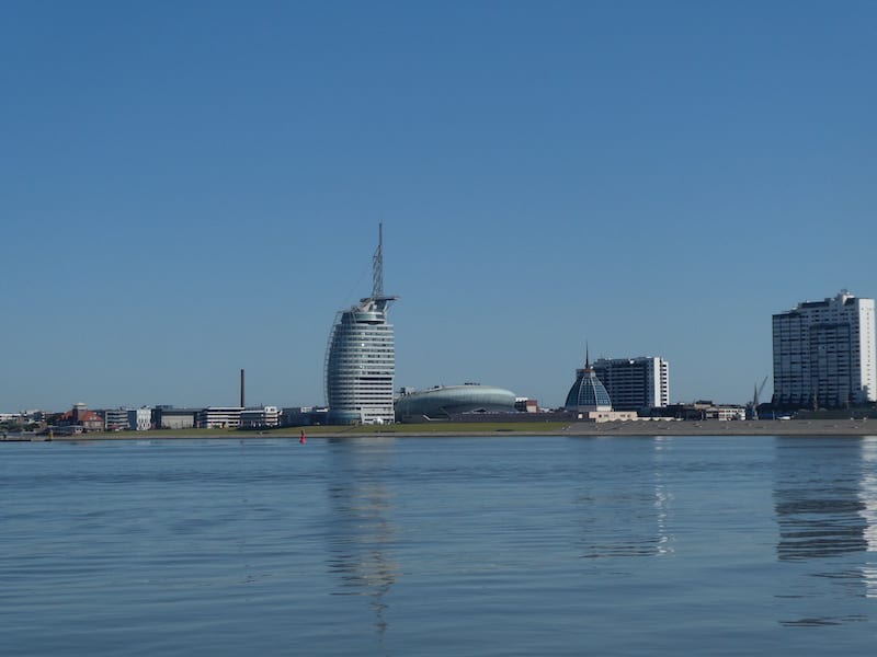 Vom Wasser aus haben wir einen tollen Blick auf das Klimahaus in Bremerhaven. Das wollen wir erst besuchen, wenn unsere Enkelin bei uns zu Besuch ist.