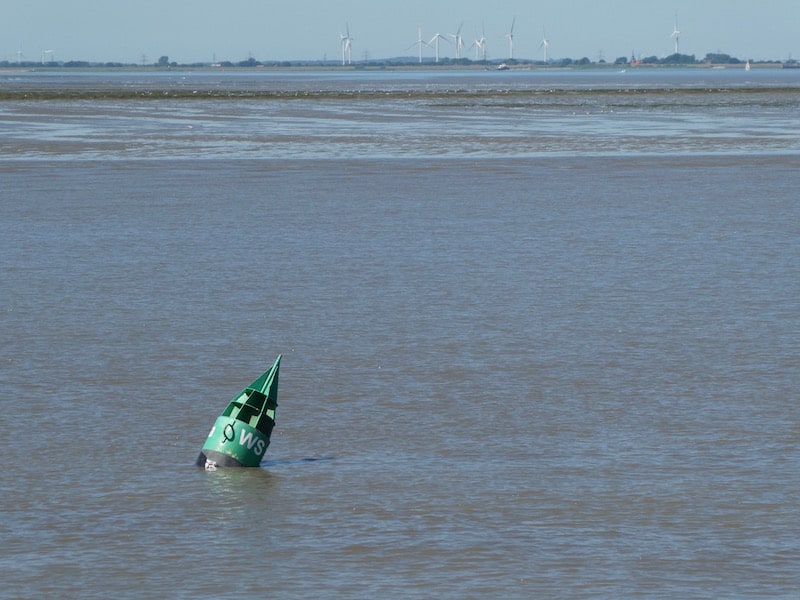 An der Tonne kann man die starke Strömung erkennen, verursacht durch die Gezeiten der Nordsee.