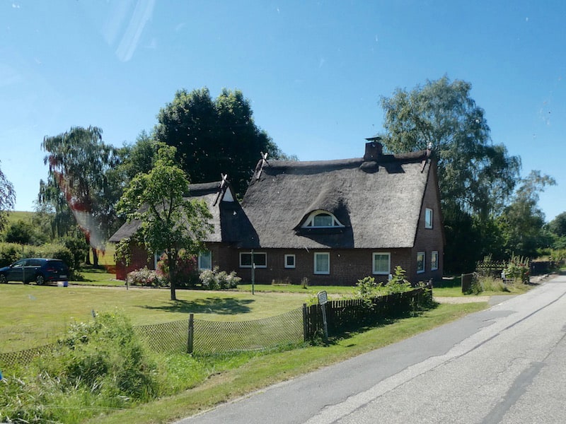 Auch stehen hier schmucke reetgedeckte Häuser.
