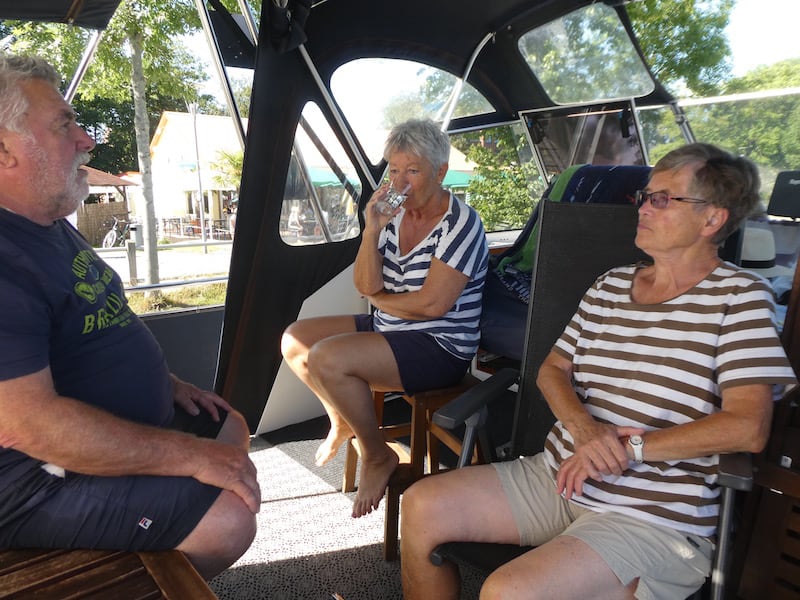 Vreni und Jögge verwöhnen uns reichlich mit Speis und Trank. Später leisten wir uns beim Italiener noch einen vorzüglichen Eisbecher. Den Absacker bekommen wir wieder auf dem Schiff. Es wird sehr spät, weshalb dieser Blogbeitrag erst am nächsten Tag geschrieben wurde.