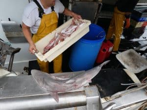 und ein Fischer hat sogar einen kleinen Hai in seinem Fang.
