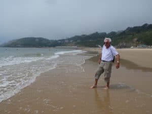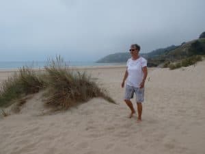 Am Nachmittag, – es ist immer noch neblig -, machen wir uns auf zu einer Wanderung über den herrlich grossen Strand. Teilweise ist der Sand feiner als Puderzucker.