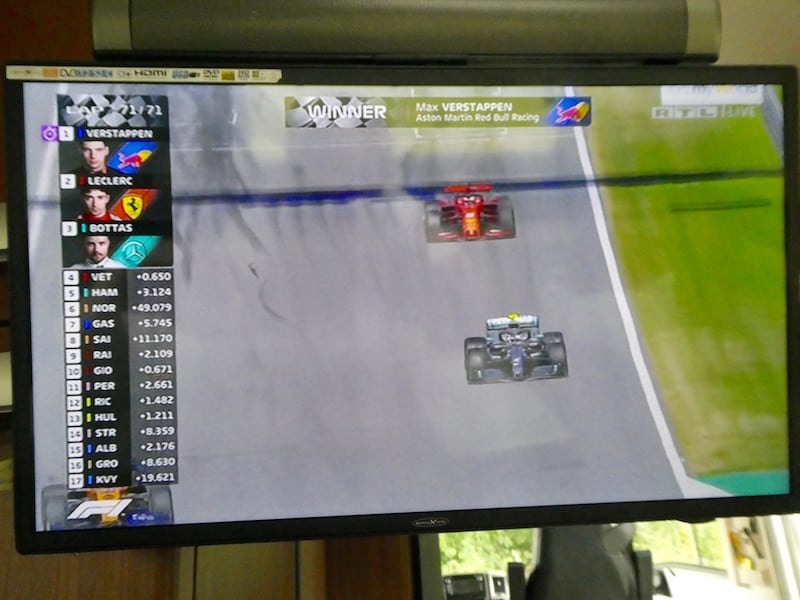 Am Nachmittag sucht sich Michael einen neuen Standort, auf dem SAT-Empfang möglich ist und es trotzdem etwas Schatten gibt. So kann Michael das Formel 1 Rennen im Fernsehen verfolgen. Es war spannender als auch schon, weil Mercedes diesmal nicht so dominiert hat.
