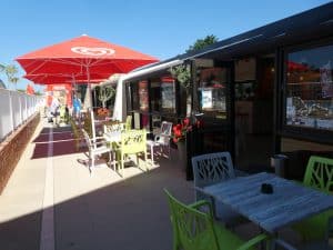 So schön dieser Campingplatz auch ist, – hier das Restaurant mit kleinem Laden -, checkten wir noch vor 12 Uhr aus.