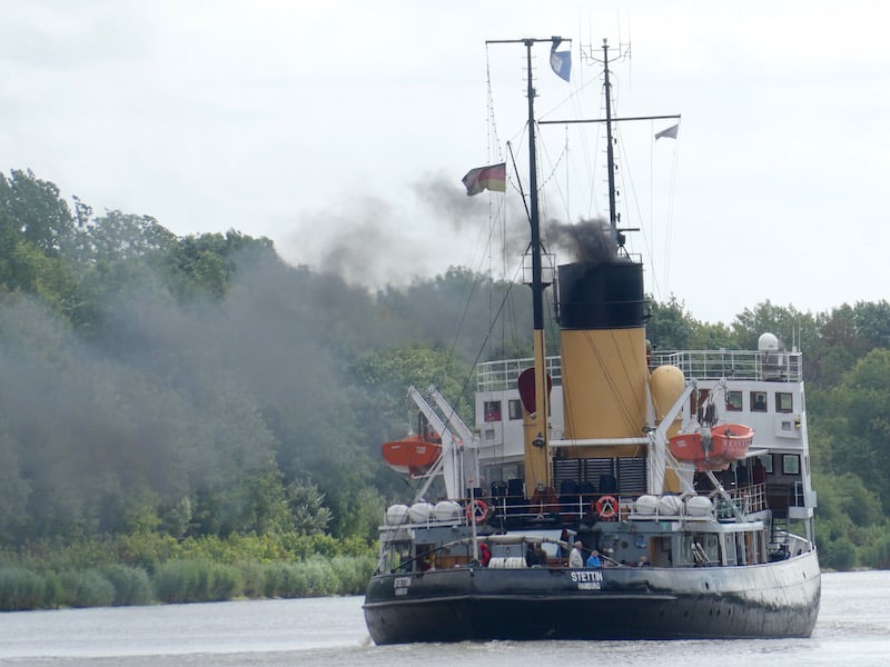 Dieser Oldtimer „Stettin“ aus dem Jahre 1933 ist noch ein kohlebefeuertes Dampfschiff mit entsprechenden Emmissionen.