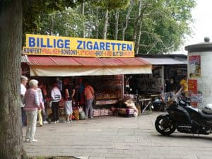 Kaum über der Grenze erwarten uns links und rechts unterschiedlichste Verkaufsstände.