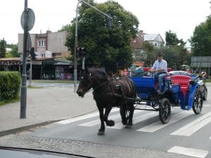 Auch viele Pferdekutschen bieten ihre Dienste an.