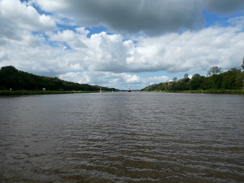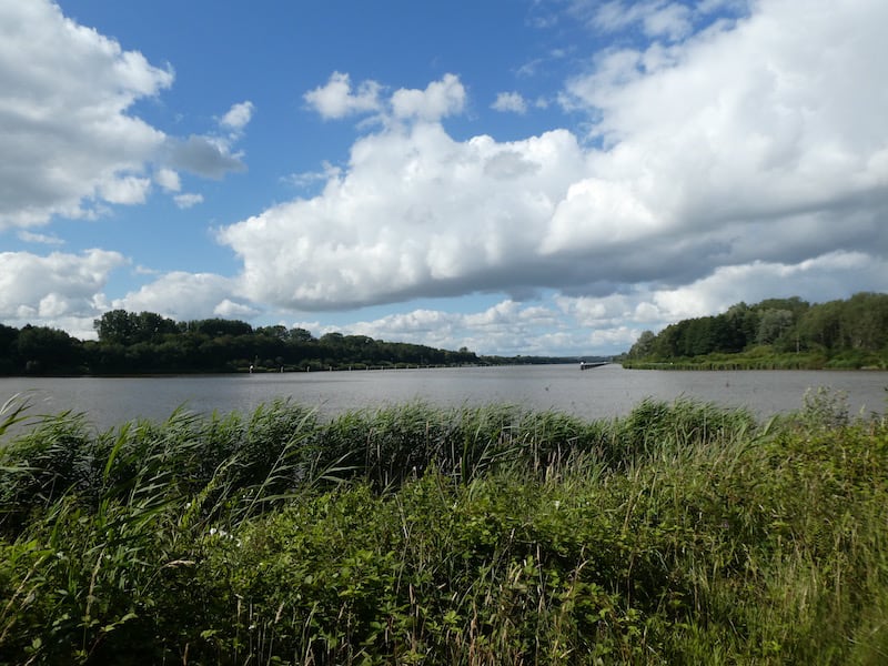 Es kommen nicht nur Schiffe vorbei, sondern auch eine Reiterin und eine junge Familie Nilgänse. Mit Fotos von Schiffen halten wir uns heute sehr zurück.
