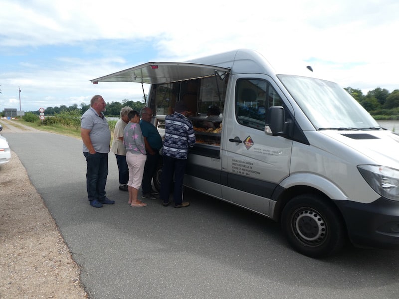 Ein cleverer Bäcker kommt auf den Platz und macht guten Umsatz. Auch wir erstehen frisches Brot bei ihm.