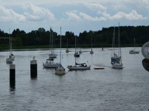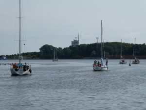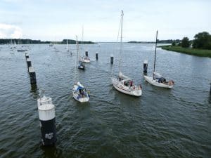Morgens verlassen wieder viele Boote den Hafen von Swinemünde. Bei den meissten könnte man meinen, sie seien auf der Flucht oder es gehe um ein Qualifying.