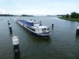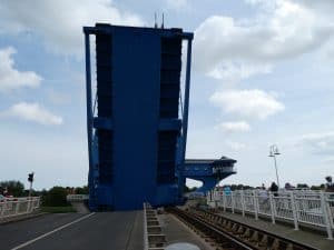 Danach kam bald die markante Strassen- und Eisenbahnbrücke von Wolgast über den Peenestrom in Sicht.