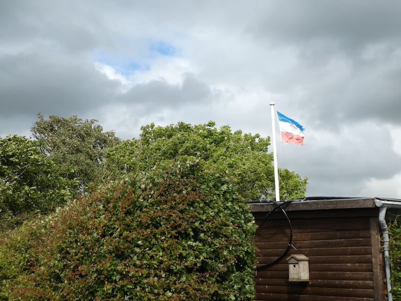 Michael wunderte sich schon mehrmals über die falsch aufgehängte Fahne der Niederlande, bis Renate ihn aufklärt, dass dies die von Schleswig-Holstein ist.