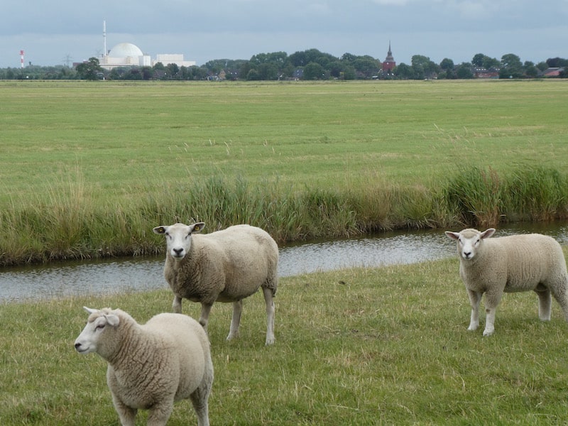 . . . und Schafe (im Hintergrund das AKW Brokdorf)