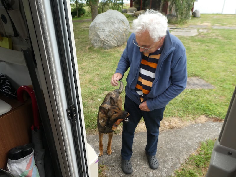 Zina, die Schäferhündin, kommt immer wieder vorbei und hofft, dass man Stöckchen wirft. Sie ist erst ein Jahr alt und folgt ihrem Herrchen auf’s Wort. Ein toller Hund!