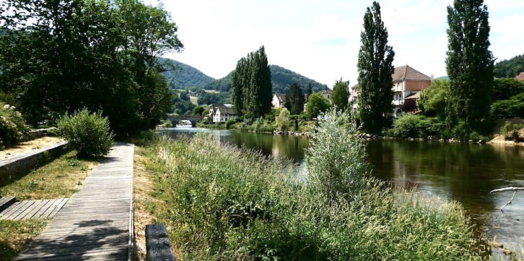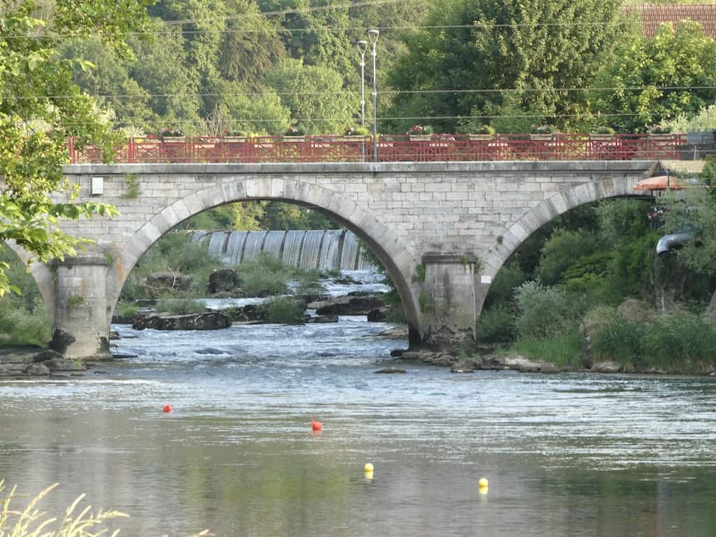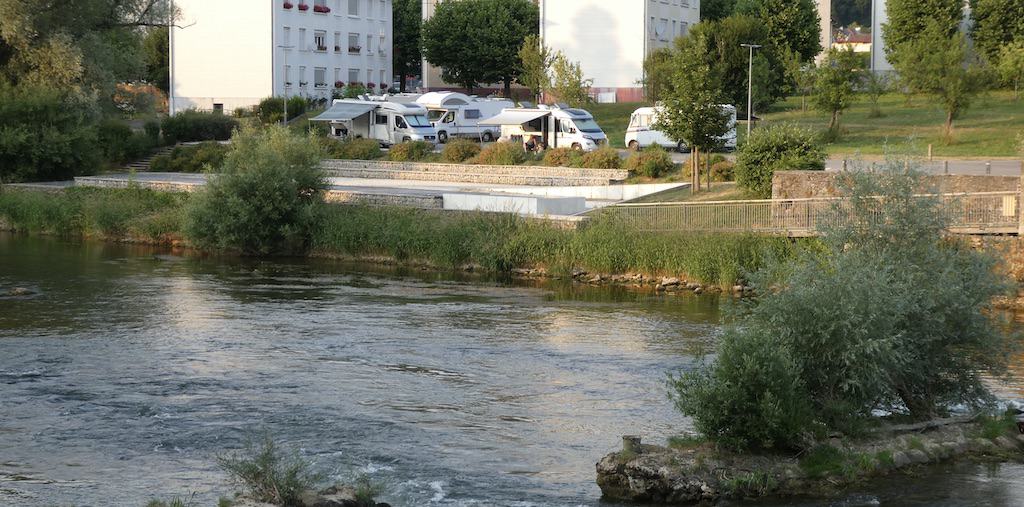 Auf der anderen Seite des Doubs liegt der Reisemobil-Stellplatz. Dahin müssen wir nachher wieder zurück.