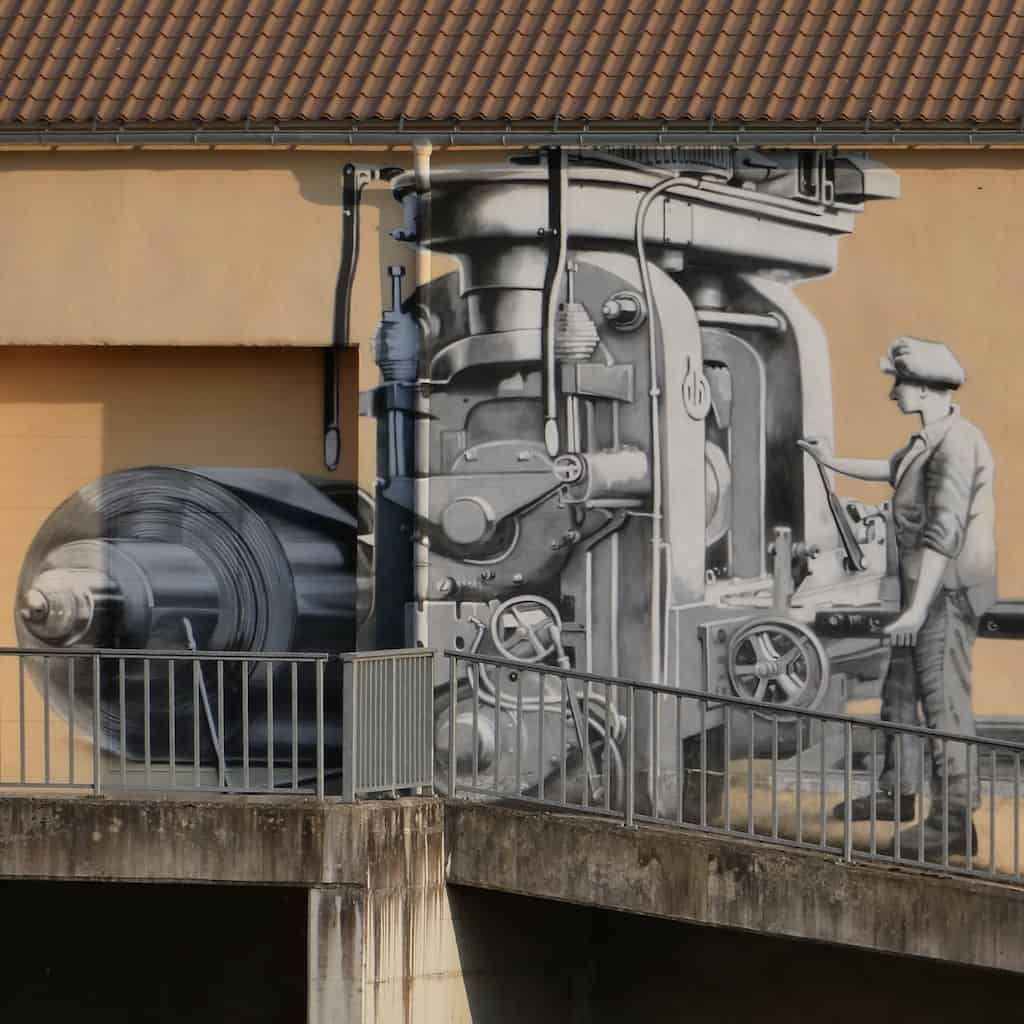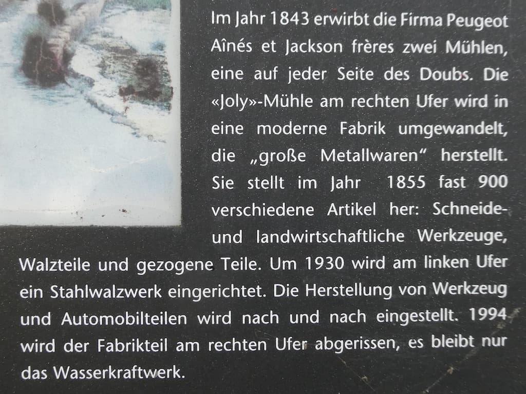 Auf der Brücke erinnert eine Tafel an zwei alte Firmen aus dem 19. Jahrhundert.