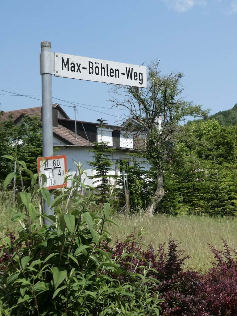 Der Maler Max Böhlen (* 1902 in Bern, † 1971 in Basel) ist hier allgegenwärtig: ein Max-Böhlen-Weg und ein Wegweiser, der zum Max Böhlen Museum führt. Das ist allerdings heute geschlossen. So holen wir uns die Informationen im Internet. Max Böhlen lebte u.a. in Ostfriesland, an der Flensburger Förde und in Schleswig und zog 1939 hier nach Egerten. Es ist eine interessante Vitae.