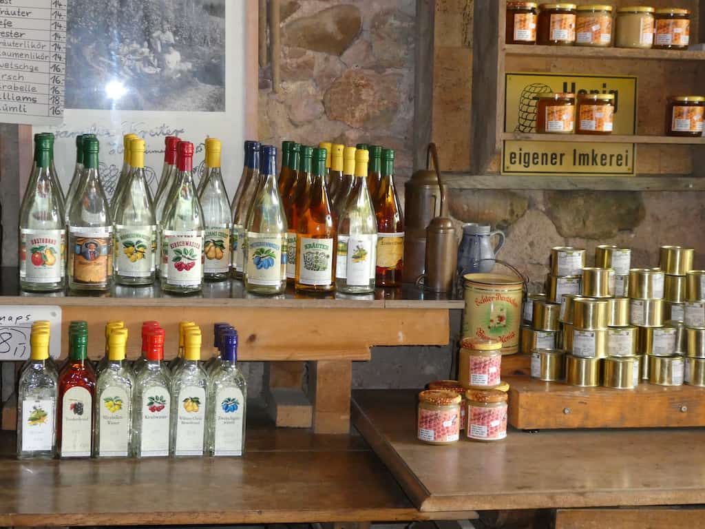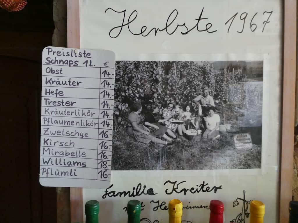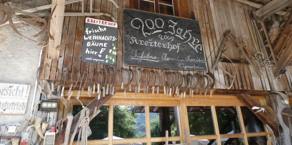 Der Kreiterhof hat heute seinen Wirte-Sonntag und ist geschlossen. Trotzdem stehen im Eingang frei zugänglich das ganze Spirituosen- sowie das Büchsenwurst- und Honig-Angebot. Hier hat man noch Vertrauen in die Menschheit!