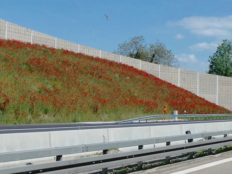 An der Autobahn bestaunen wir die vielen Mohnblumen.