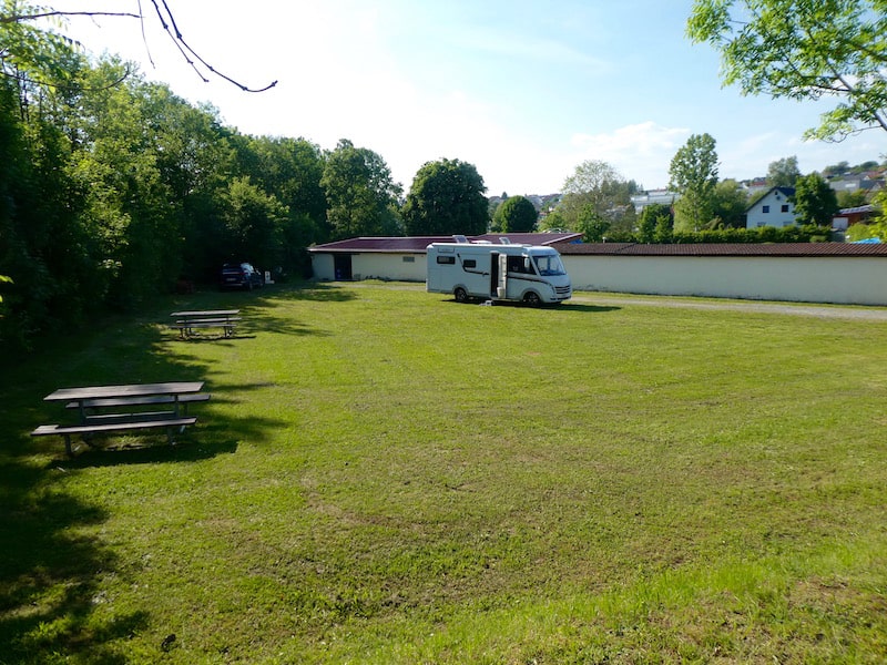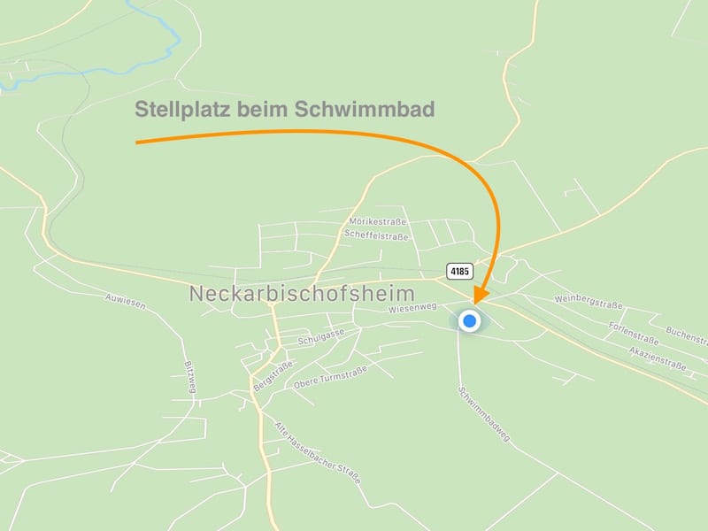 Wir steuern deshalb Neckarbischofsheim an, wo es beim Schwimmbad einen schönen und ruhigen Stellplatz gibt.