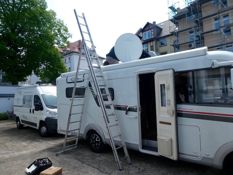 Gegen Mittag fahren wir weiter nach Karlsruhe. Hier haben wir bei Crystop, dem Hersteller unserer SAT-Anlage, einen Termin vereinbart. Seit vorgestern macht die automatische Satellitensuche nicht mehr was sie sollte.