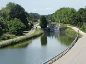 Mehrmals kreuzen wir den Rhein-Rhone Kanal mit seinen vielen Schleusen. Es ist schon bald wieder sehr heiss.