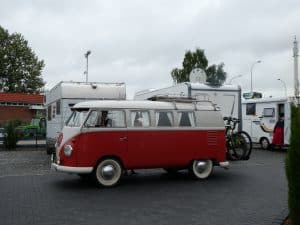 Ein Oldtimer VW Bus mit einem dazu passenden Hippie Pärchen fuhr auch gerade fort.